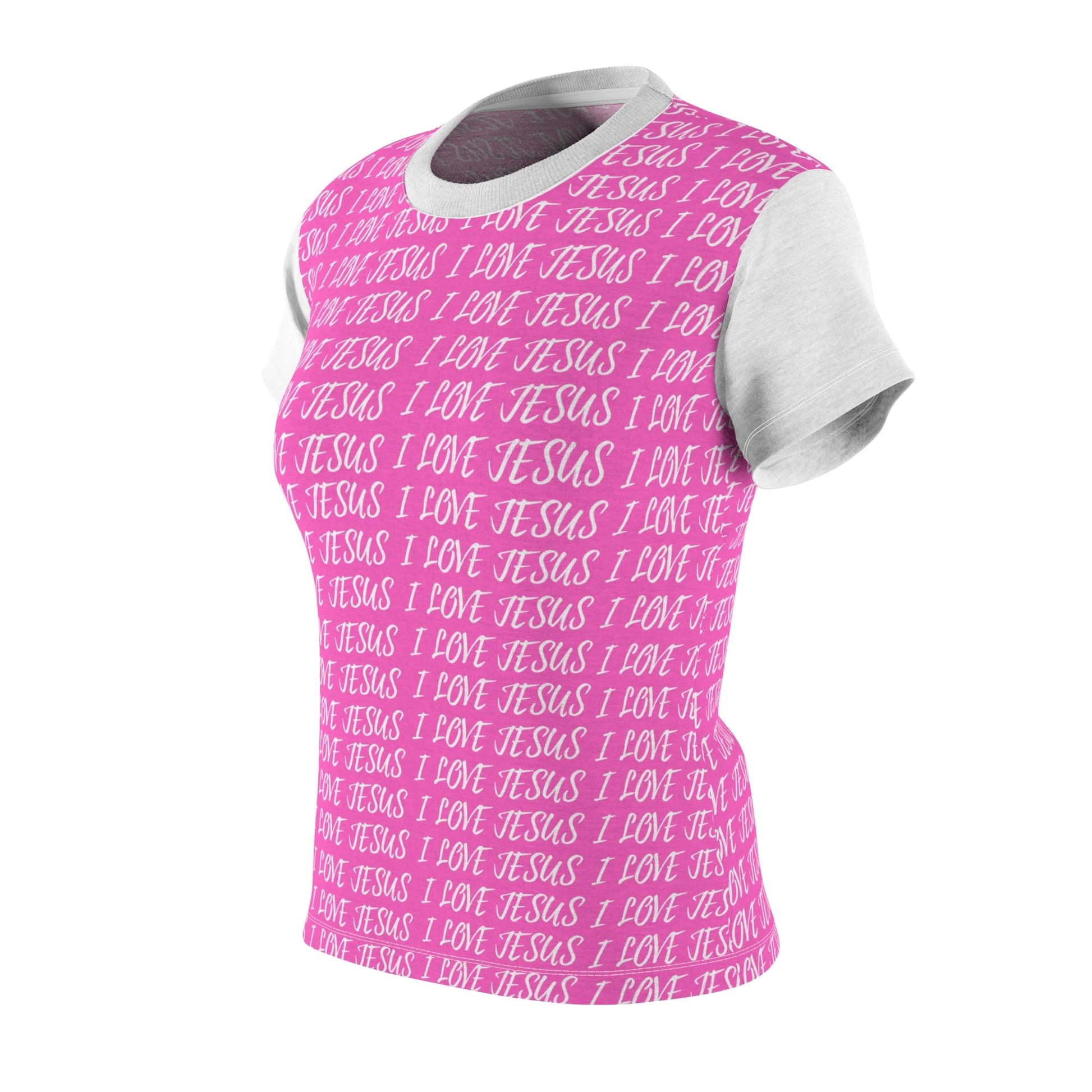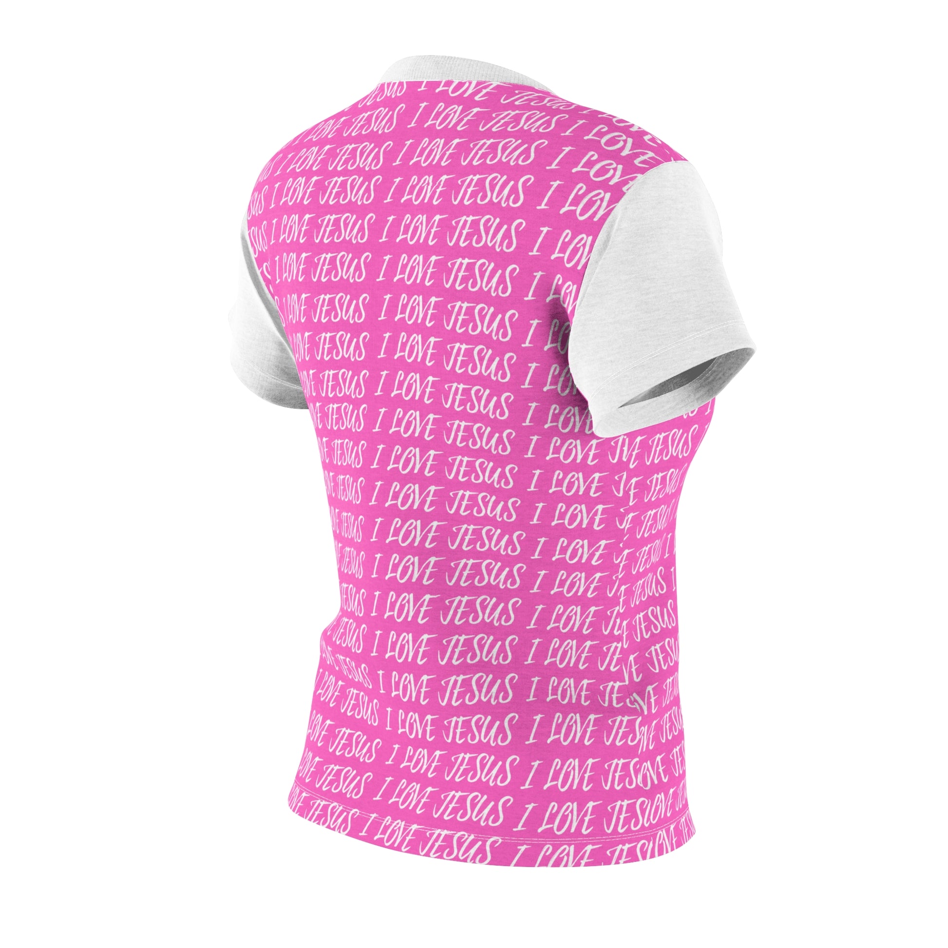 The Love Jesus Women’s T-Shirt features a soft, repeating script that reads like a gentle reminder rather than a bold statement. Its all-over pattern brings warmth and personality while keeping the message personal, wearable, and uplifting.