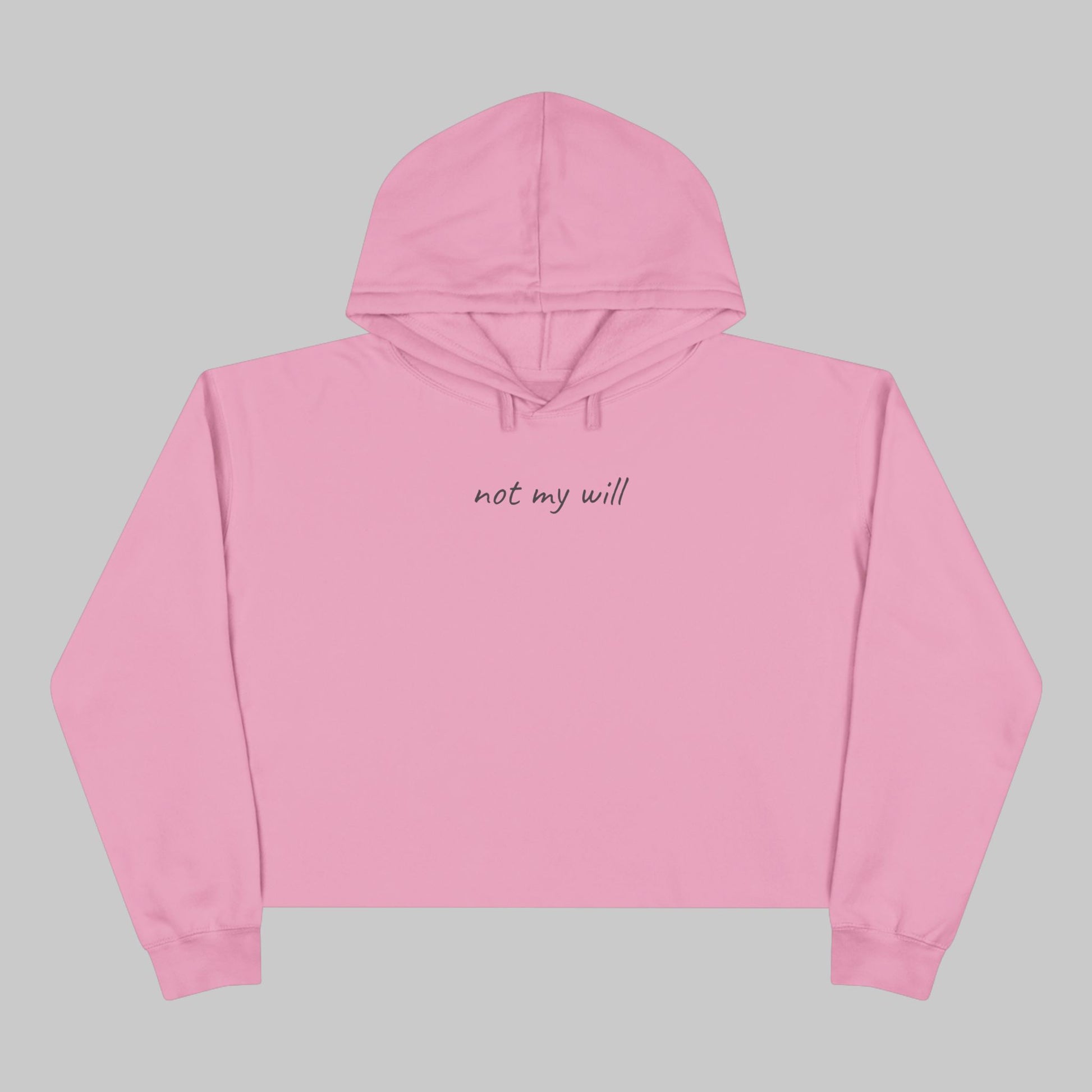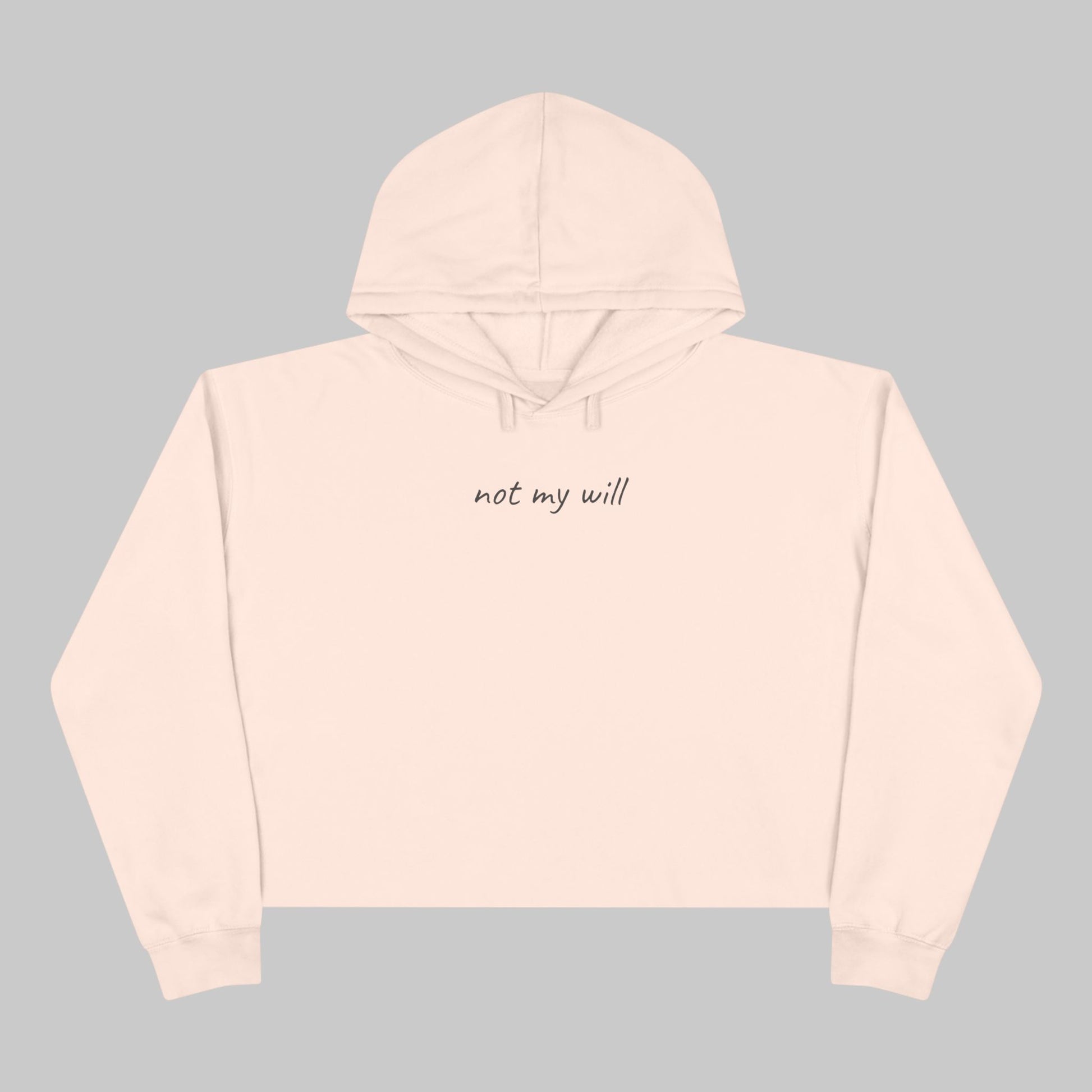 A softly structured cropped hoodie designed to feel effortless yet intentional. The handwritten script “not my will” rests quietly across the front — a reminder worn, not announced.