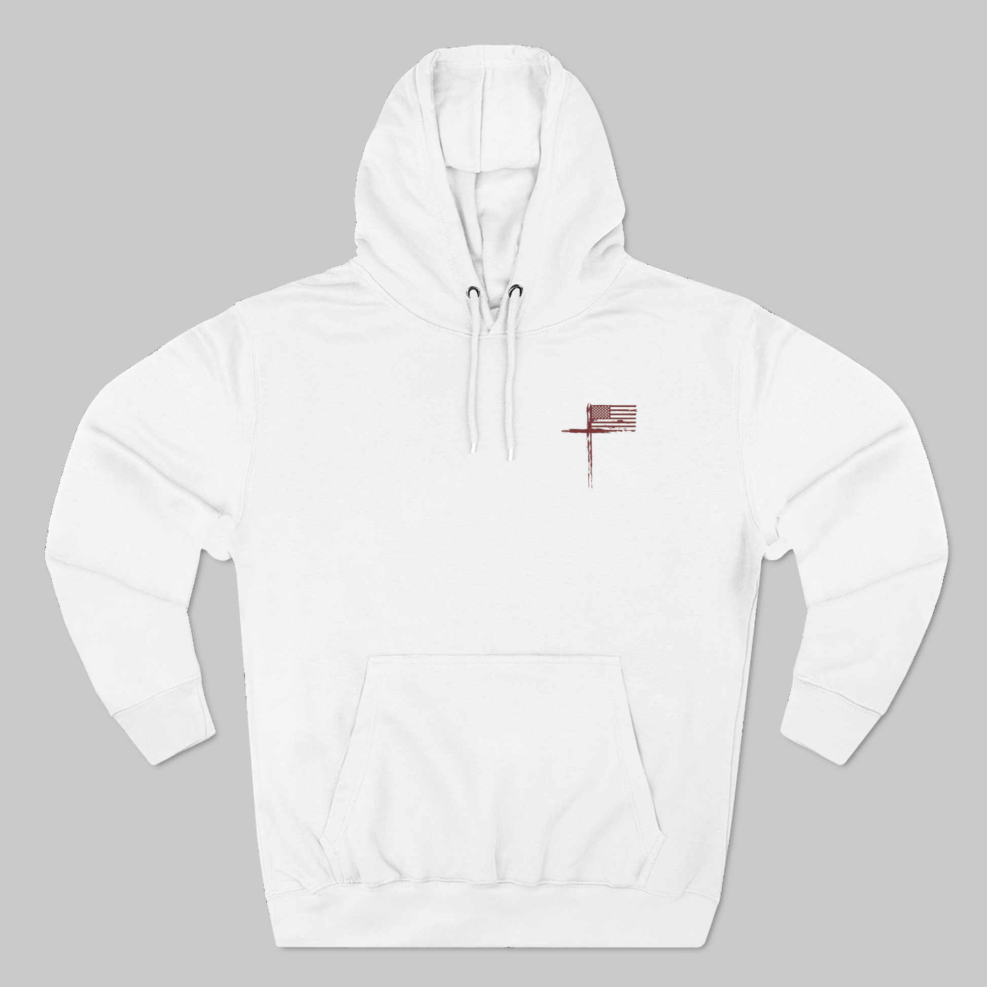 A quiet expression of faith, freedom, and steady conviction. This mid-weight fleece hoodie is designed for everyday wear that feels grounded rather than loud. The subtle distressed chest flag carries a handcrafted, timeworn character—an understated reminder of values that endure long after trends fade.