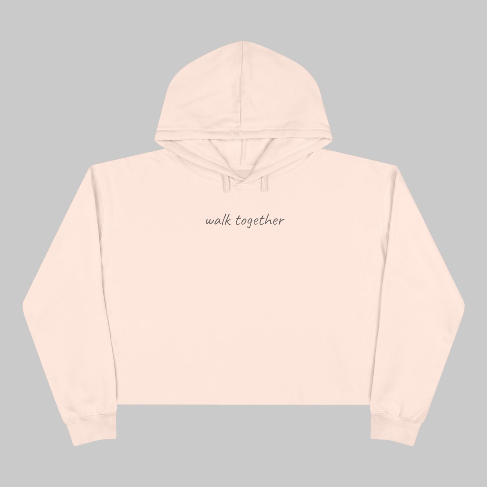 The Walk Together Cropped Hoodie blends an easy silhouette with a message that feels personal rather than loud. Its soft fleece interior and relaxed shape create a lived-in feel from the start, while the subtle script reminds us that faith is often walked out in everyday moments — not rushed, not forced, just steady.